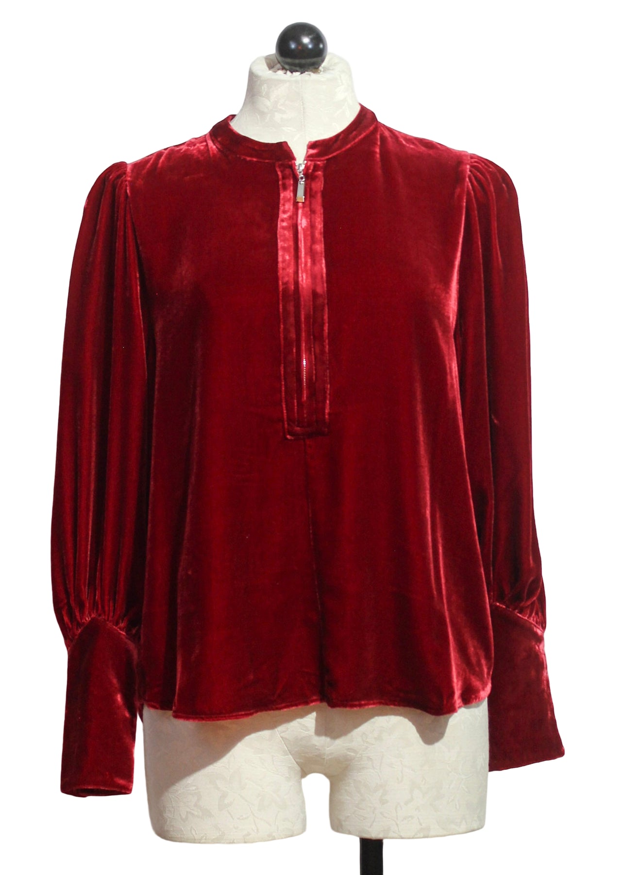 Silk Velvet Zip Front Blouse-Jessie Liu