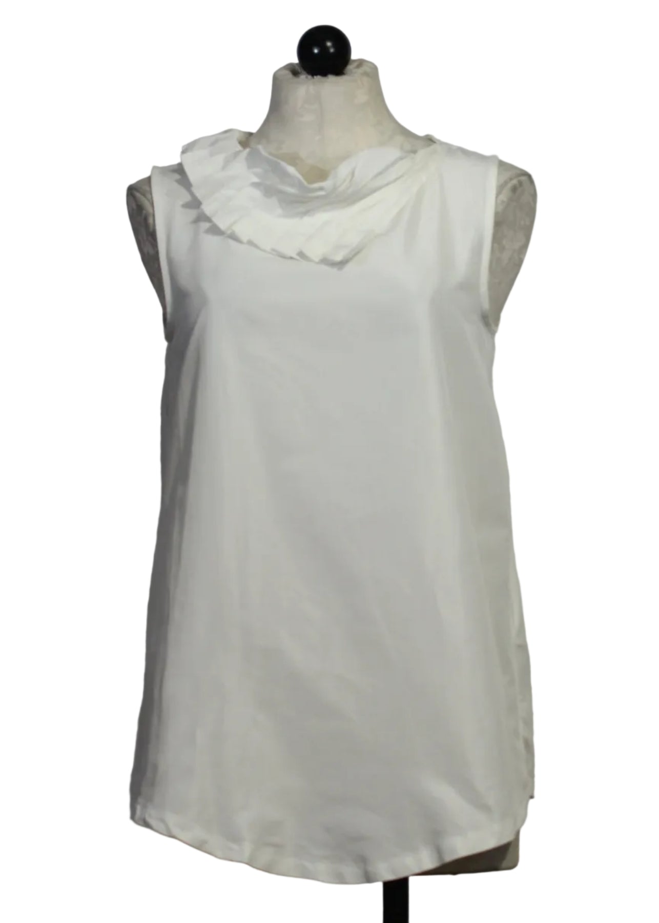 The Amber Top by Kozan is a sleeveless tunic with a pleated neck. This is a tunic top that you will reach for time and again because it layers like a pro! The flattering silhouette is both modern and easy to wear.