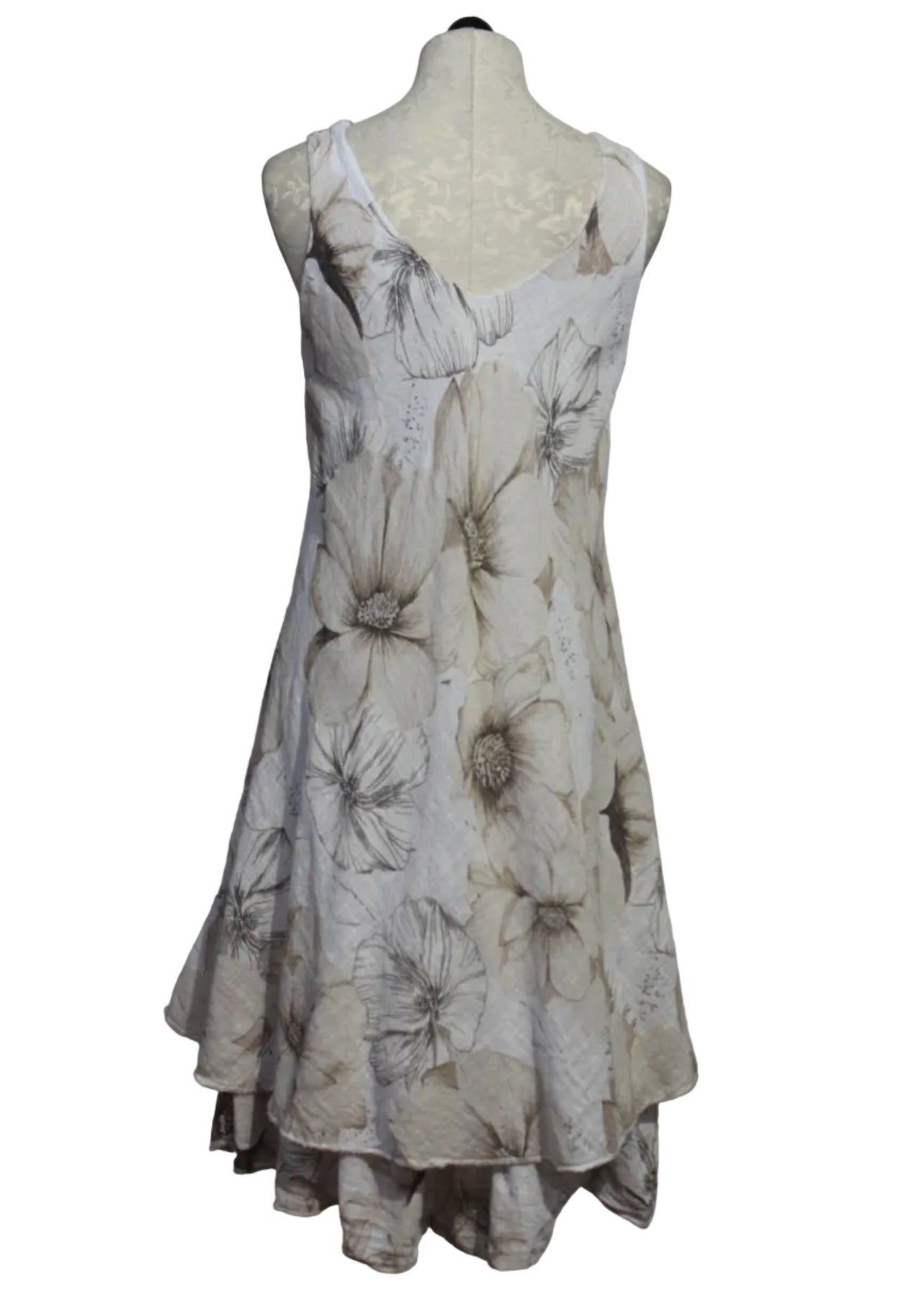 Beige Sleeveless Cotton V Neck Floral Dress by Bella Amore with a longer ruffle bottom slip