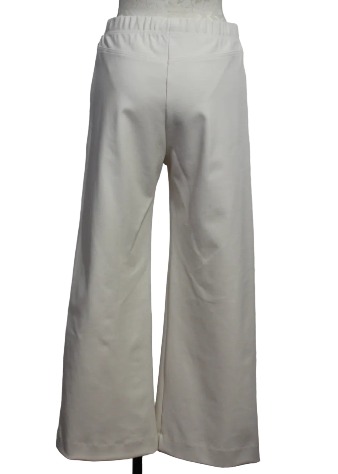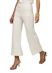The Celia Cropped Pants by Fifteen Twenty are a wide leg, effortlessly chic, pull-on style pants in an ecru color. They feature a smooth elastic waistband, front patch pockets, and a modern cropped silhouette. The utility inspired style is the perfect blend of laid-back and refined, ideal for dressing up or down for everyday wear.