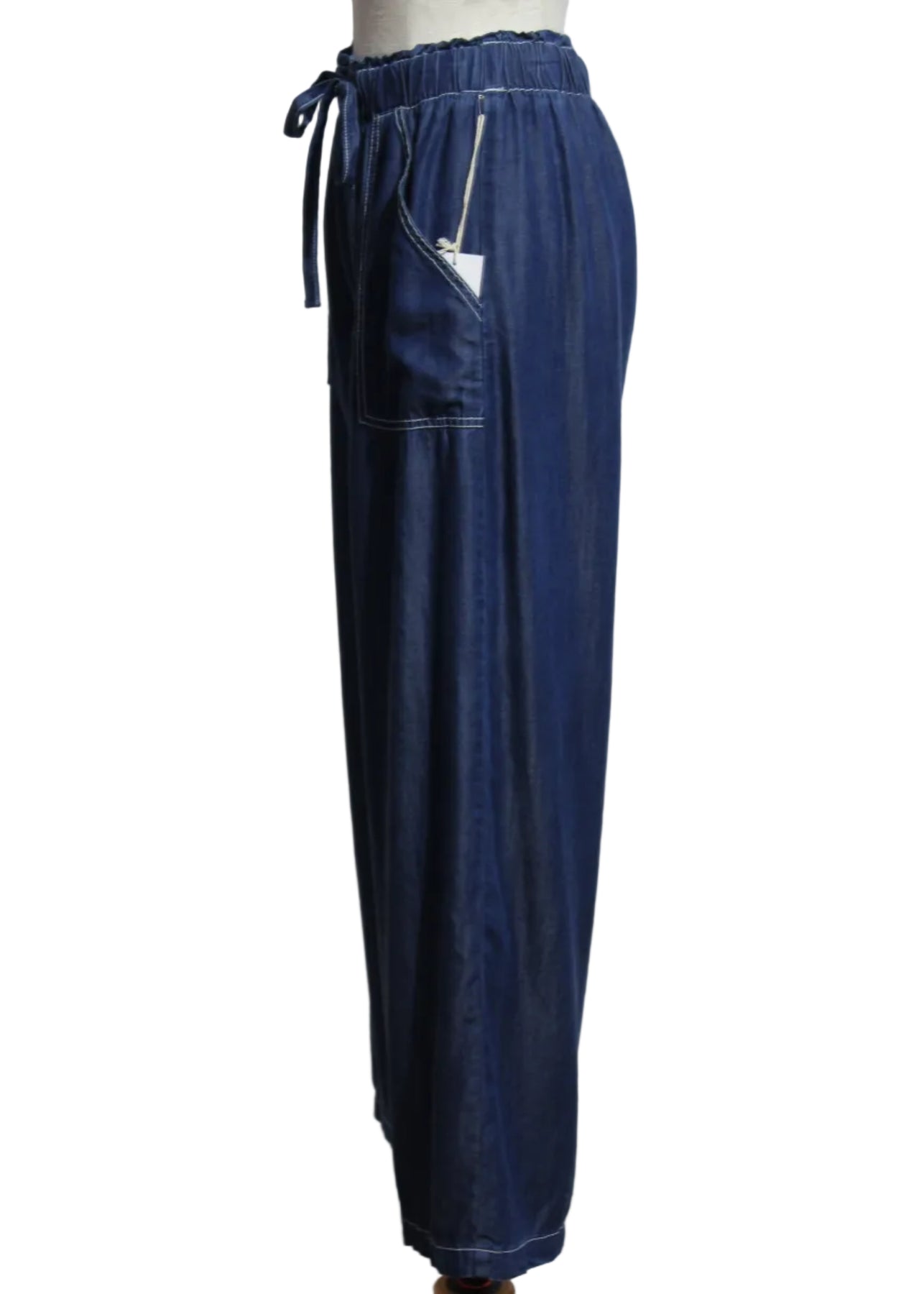 The Kendra Patch Pocket Pants by Fifteen Twenty are easy and relaxed with contrast stitching and a pull-on waistband with adjustable tie waist. They are crafted from a soft washed Tencel fabric that gives a fluid drape and ultra-comfortable feel. These wide leg pants offer all-day ease with their oversized pockets and mock fly that give the look of a tailored pant with a comfy style.