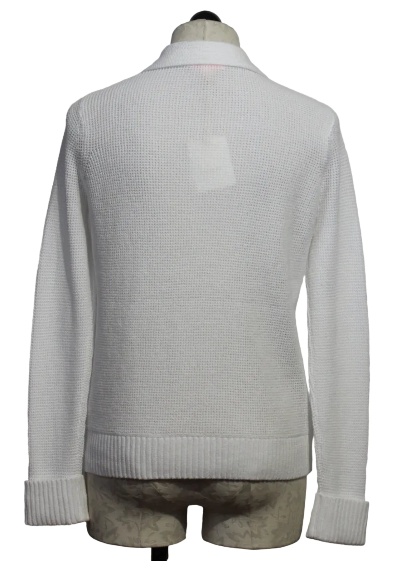 The Knit Bliss V Neck Sweater by Lisa Todd is crafted with hand crochet medallions and features a split-neck collar and a rolled cuff detail. An allover textured stitch decorates this piece for absolute perfection. The blouse is designed to be as comfortable as it is striking, created in 100% luxury cotton.