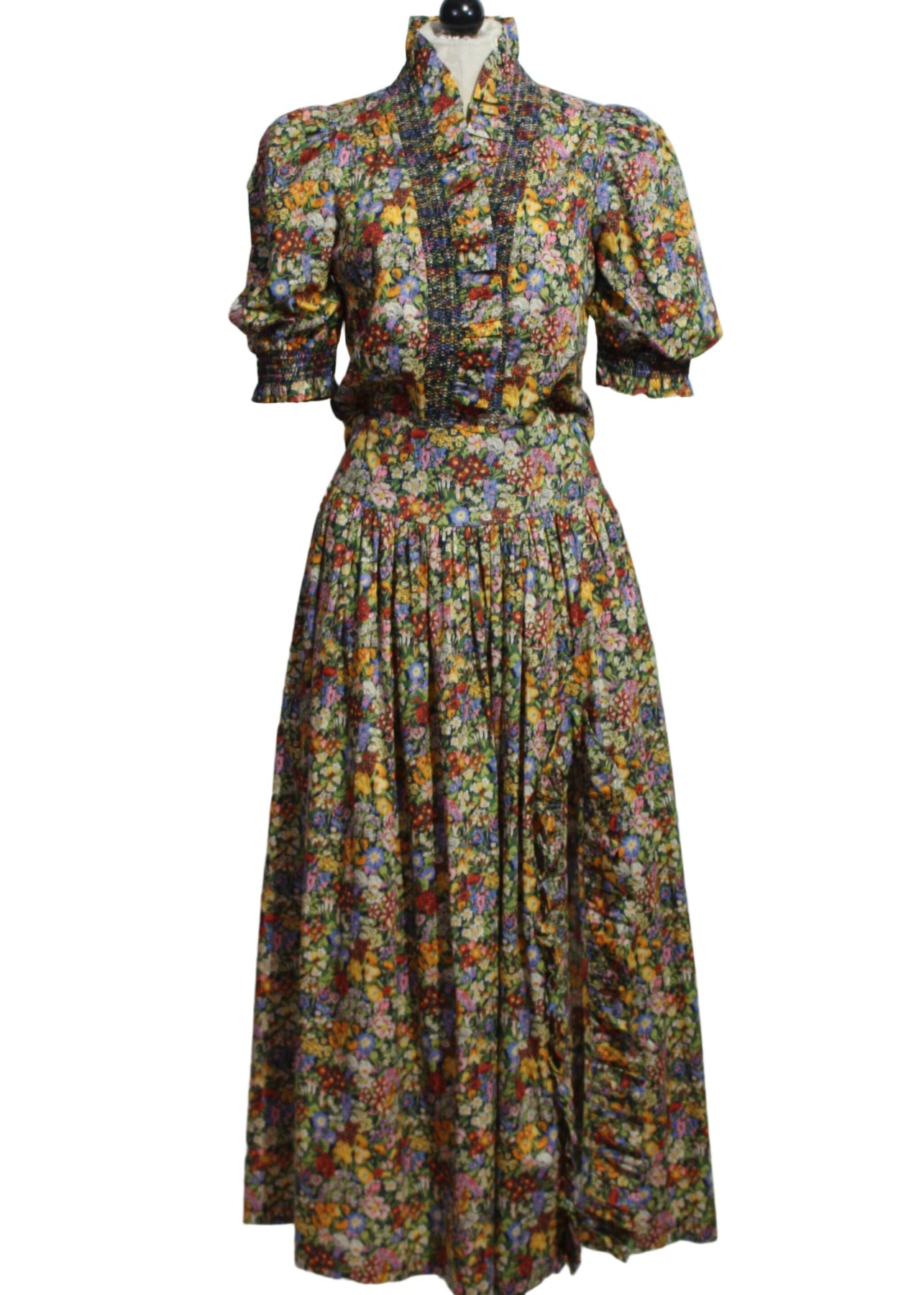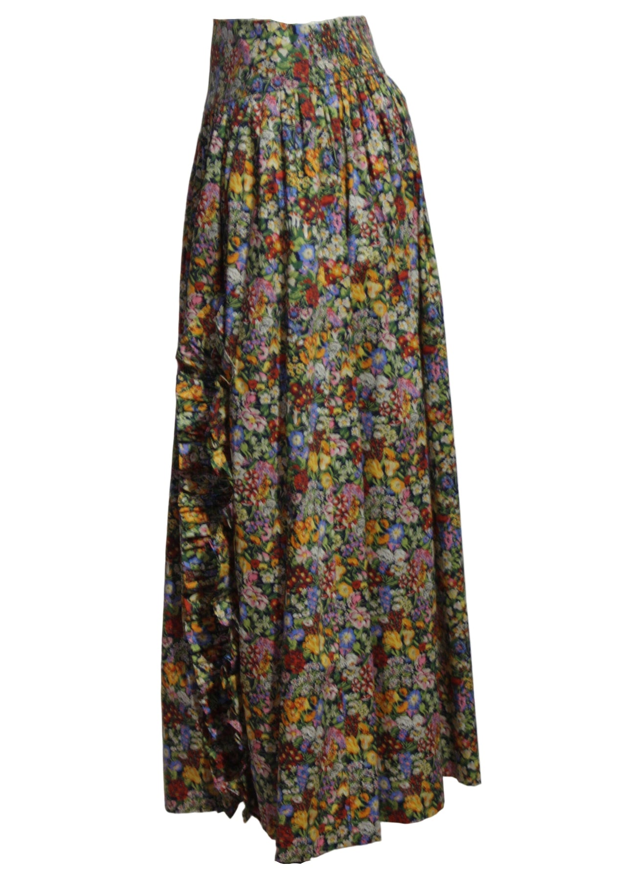 The Sunshine Skirt by Love the Label features the favorite Cottage Garden Liberty print, made with their exclusive cotton fabric quality. The skirt features a breezy tiered silhouette, an allover vivid warm toned floral print, and a ruffled side slit. This flattering silhouette offers effortless movement and charm for your next event!
