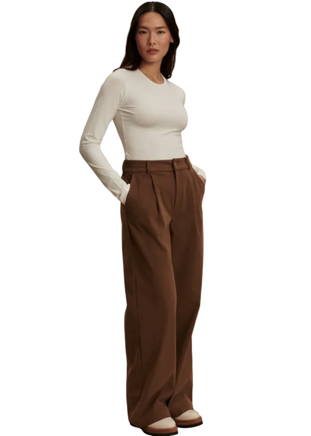 full view of model wearing the white Edna Long Sleeve Fitted Tee by Varley