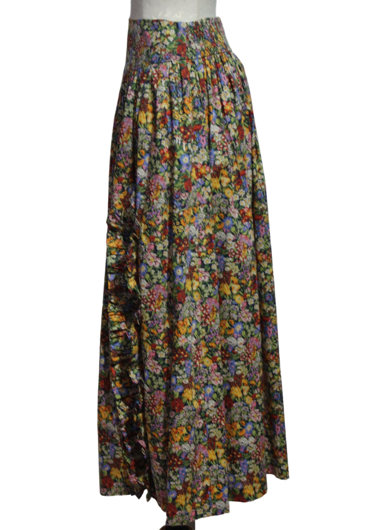 The Sunshine Skirt by Love the Label features the favorite Cottage Garden Liberty print, made with their exclusive cotton fabric quality. The skirt features a breezy tiered silhouette, an allover vivid warm toned floral print, and a ruffled side slit. This flattering silhouette offers effortless movement and charm for your next event!