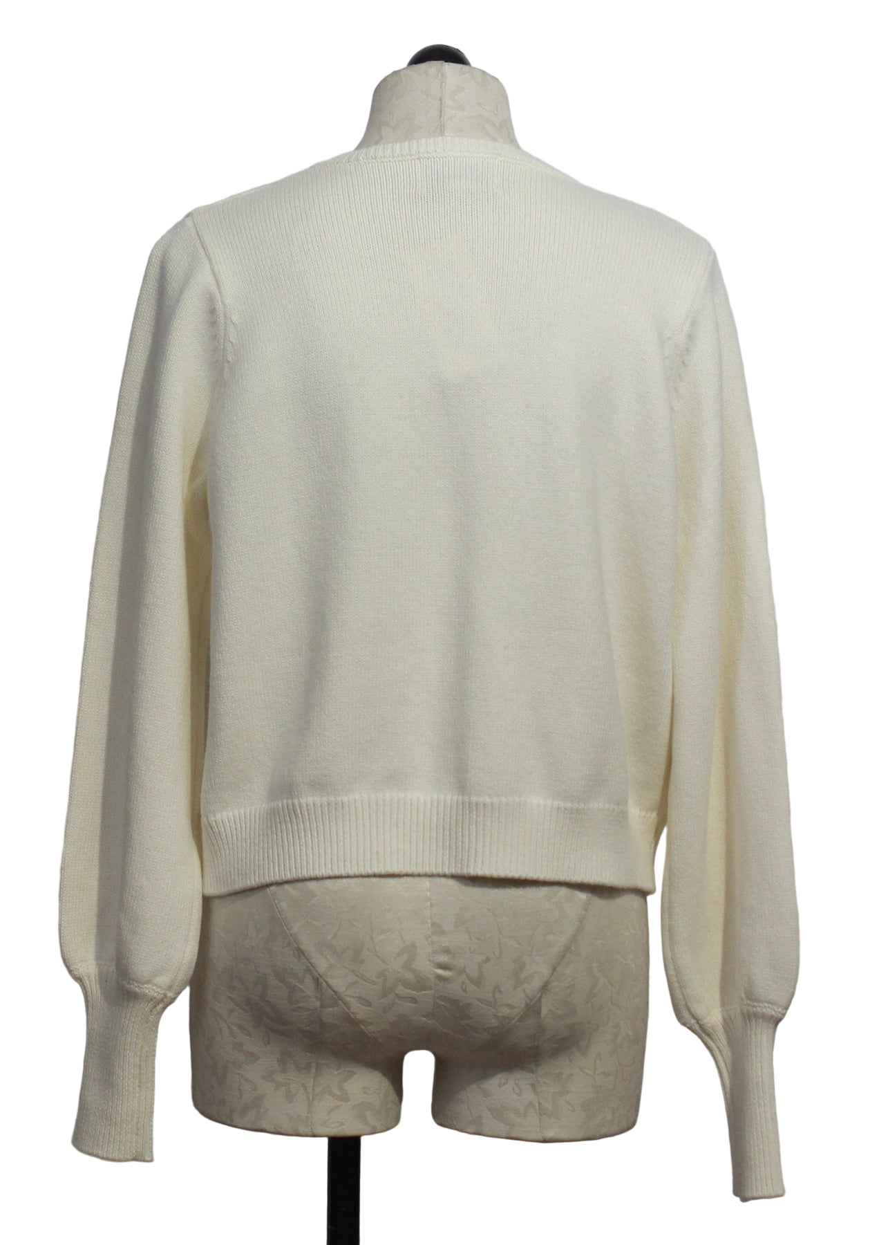 The Dena Ribbon Tie Sweater by Fifteen Twenty is a cream color sophisticated knit with a bold black ribbon tie front closure. It is designed with set in sleeves, extended ribbed cuffs and hemline, and a slightly cropped length with a relaxed body for a polished look. Elevate your everyday look with this timeless silhouette that will add a touch of drama to your style!