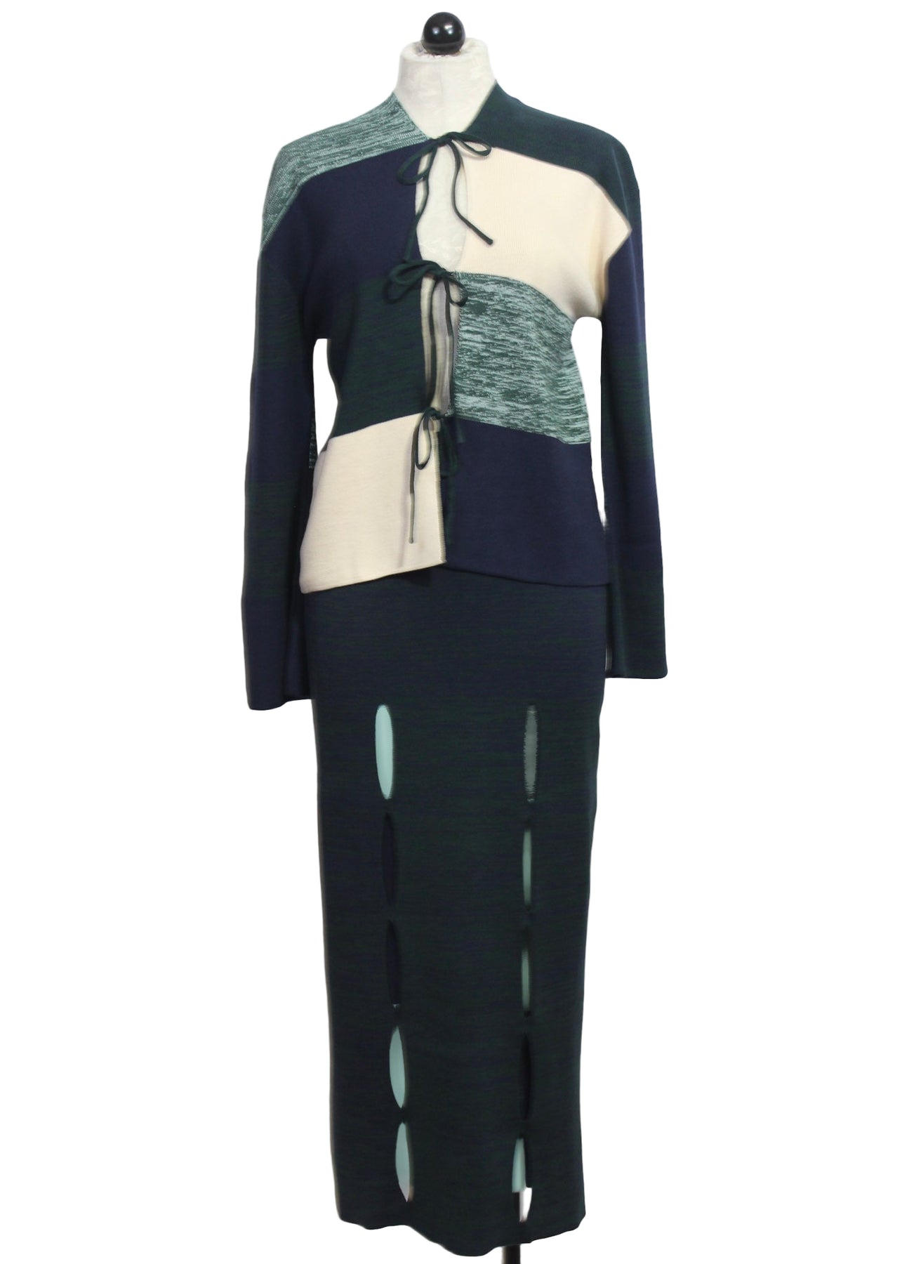 The Berenize GOTS Sweater by SKFK is a short and lightweight cardigan sweater with three front ties and decorative cutouts. Made from Certified Organic Cotton, this soft knit blends cozy comfort with a sustainable design. The modern silhouette and refined simplicity make it an easy choice for layering or wearing on its own.