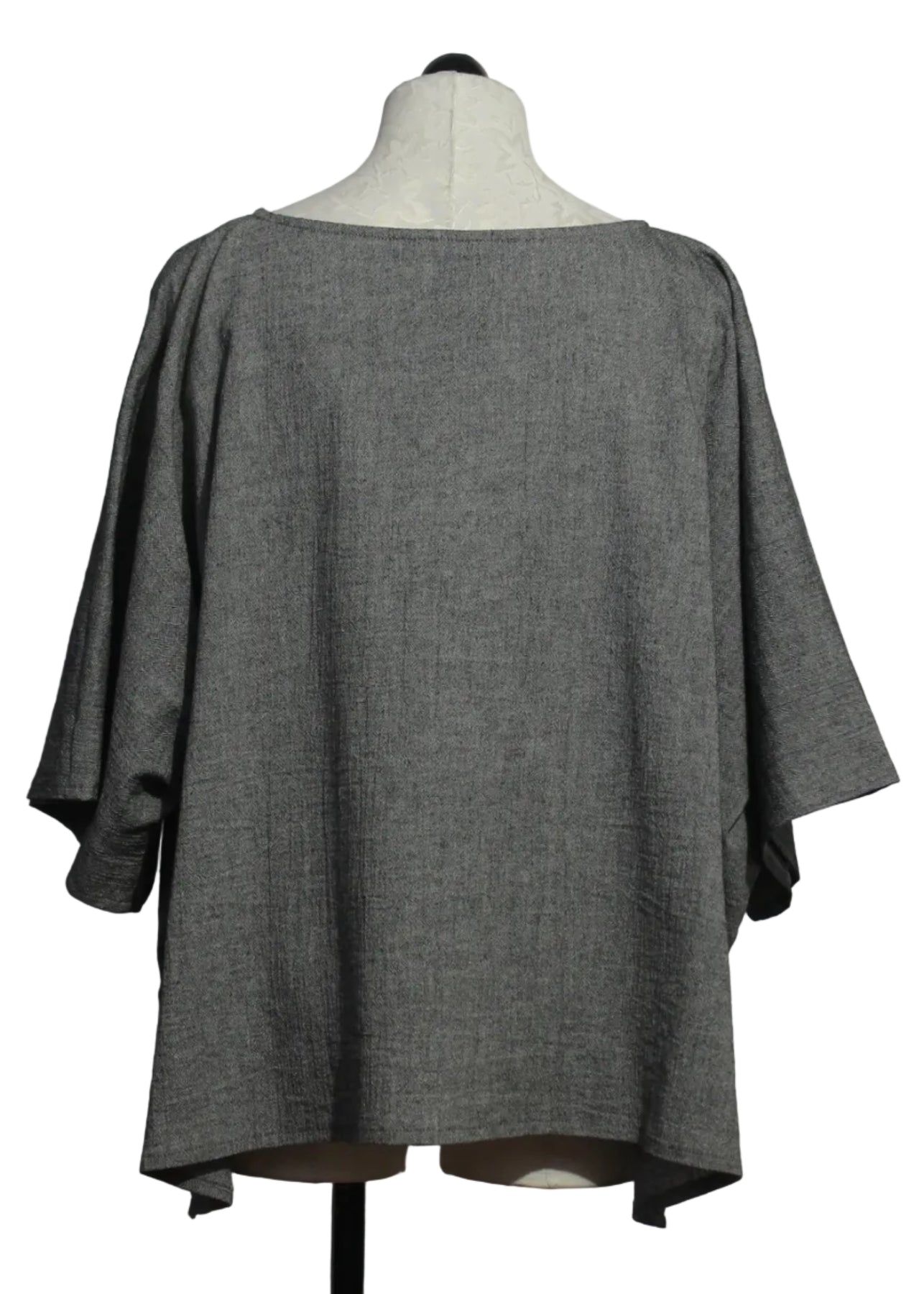 The Alina Top by Kozan is an easy to wear oversized boxy top. It features cropped Dolman Sleeves, a boat neckline, and a high-low hemline with side vents. The artful drape of this effortless top makes a chic statement.